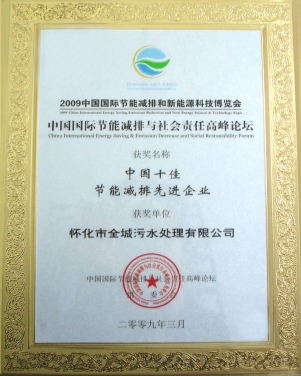 • 2009年3月在胡錦濤、溫家寶等中央領(lǐng)導(dǎo)出席的中國國際節(jié)能減排與新能源科技博覽會(huì)和高峰論壇上評(píng)為“中國十佳節(jié)能減排先進(jìn)企業(yè)”。
